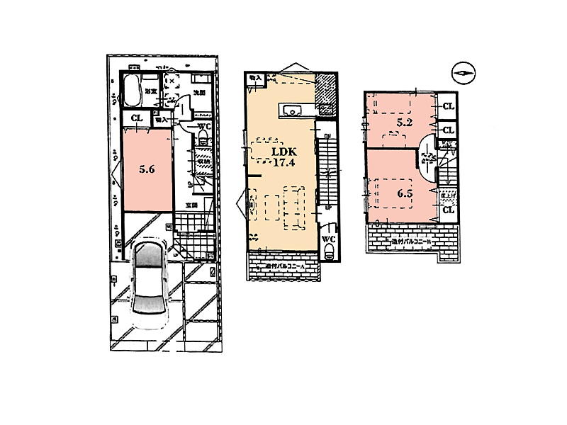 74.93㎡(約22.6坪) 80 % 新築 木造3階建