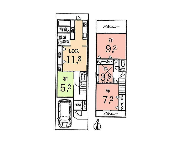 95.0㎡(約28.7坪) 60 % 中古 木造2階建